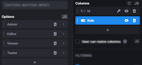 As the title suggests, I have a table with inline filters. I have a select type column with filter values OptionA, OptionB