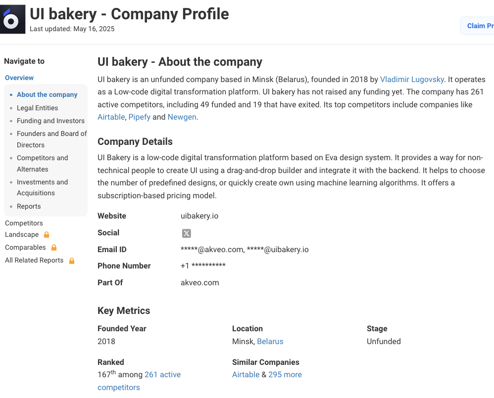 On the third-party profile site Tracxn, UI Bakery is still listed as “based in Minsk (Belarus)”. Could you clarify why this is the case and whether UI Bakery maintains any operations in Belarus today? If so, what governance applies regarding access to production systems?
