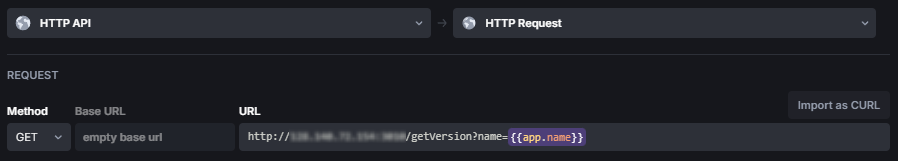 Inside UIBakery I can now create a new action with a `HTTP API` step accessing the route with the current app name: