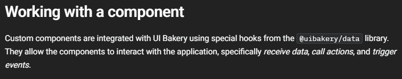 While we’re on the topic, the docs only mentions the UIBakery API when talking about the provided hooks under “Custom Components”.