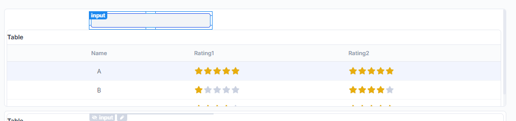 Rating components are working perfectly, but in my example i don’t have rating components, i just have a table with rating columns.