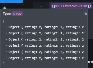 they do also provide utility for inputs and such, but only directly on the component. It would be nice if the cards generated would be indexed and callable in a more direct way, for example {{ui.listView.get(n)}}, but nothing of the like is implemented yet.